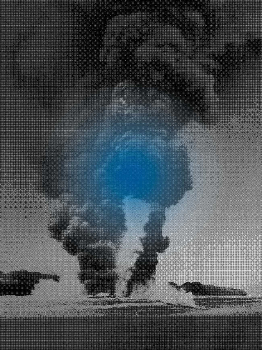 205 x 105 Cm. iPhone 12, imagen en Bitmap & confeti azul. Impresion sobre Hahnemnuhle® Photo Rag UltraSmooth®, 310 gms. 100% Cotton Linters Archival, acid & lignin free.. Montaje de conservación con adhesivo Lineco®